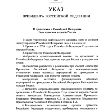 Стратегический курс на единство получил новый мощный импульс: президент РФ Владимир Путин подписал указ о 2026 году как Год единства народов России и поручил правительству реализовать запланированные меры. Указ уже опубликован и вступает в силу с дня подписания. Задача тематического года — укрепление гражданского мира и согласия внутри страны. Правительство в кратчайшие сроки должно создать...