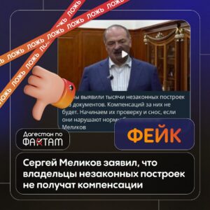 В сети распространяется видео, в котором глава Дагестана Сергей Меликов якобы говорит об отказе в компенсациях владельцам незаконных построек. Эта информация не соответствует действительности. Как установлено, ролик создан с использованием нейросетевых технологий и является дипфейком. Сергей Меликов не делал подобных заявлений. Основой для подделки стало реальное обращение главы региона к жителям Дагестана в связи с...